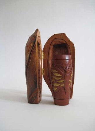 I always love combining turning and carving so first turned the vase on the lathe then carved the butterfly and cocoon.